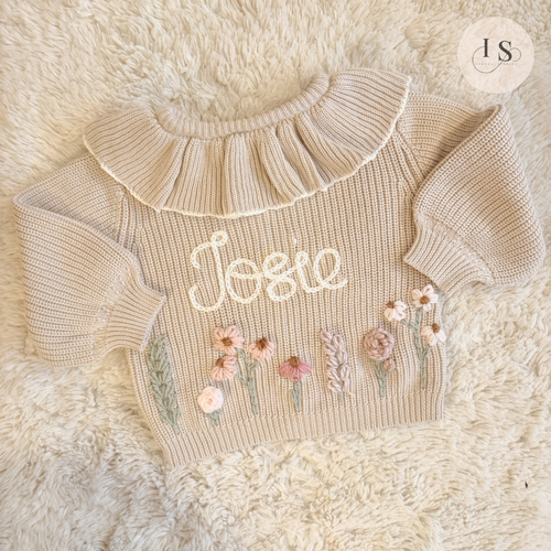 Personalized Baby Name Jumper | Hand Embroidered Knit Jumper | Newborn, Toddler, Child Gift | New Baby Gift | Baby Boy Girl Jumper | Sun -